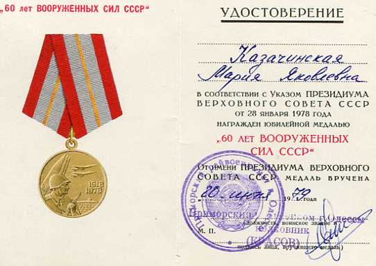 Юбилейные медали Казачинского М.Д. и Казачинской М.Я.
