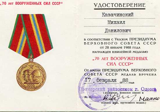 Юбилейные медали Казачинского М.Д. и Казачинской М.Я.